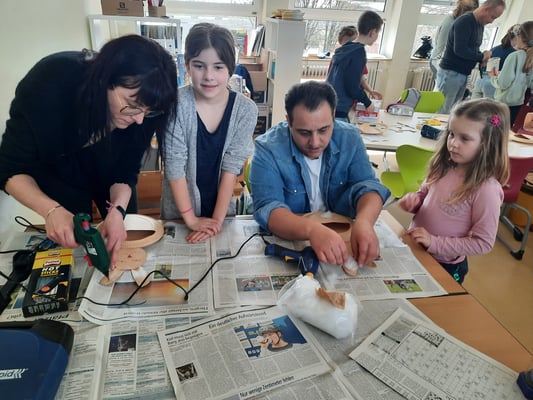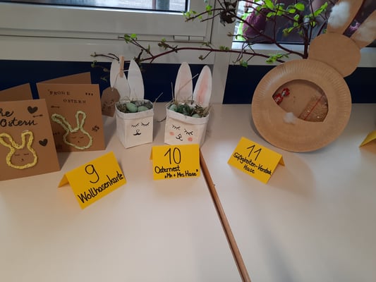 Dieses Jahr organisierte der Schulelternbeitrat ein gemeinsames Osterbasteln. Am Samstag, den 18.03.2023 wurden in und vor der Schule unterschiedliche Basteleien angeboten. Die Schüler konnten sich diese im Vorfeld anschauen, sich für eines oder mehreren entscheiden und anmelden. Es war ein gemütliches kreatives Arbeiten - mit Kaffee und Kuchen!