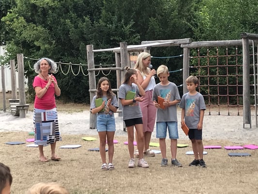 Vier Grundschuljahre sind für die diesjährigen Viertklässler nun vorbei - und das ging schnell! In einer kleinen Feier verabschiedeten sich die beiden vierten Klassen von den Schülern und Lehrerinnen der anderen Klassen.