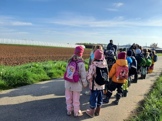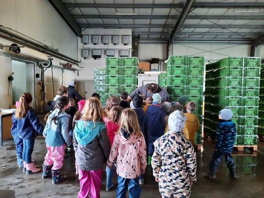 Wir, die Klassen 1a und 1b, besuchten den landwirtschaftlichen Betrieb der Familie Krebs. Im Gewächshaus zeigte uns Herr Krebs die verschiedenen Gemüsepflanzen wie z.B. Tomaten, Gurken, Paprika und Auberginen.