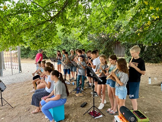 Alle zusammen waren wir unglaublich super gut drauf! Trotz der hohen Temperaturen in den Klassensälen und der Turnhalle übten wir konzentriert das Programm für die Zirkus-Aufführung am Freitag, den 14. Juli 2023.