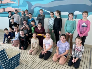 In diesem Schuljahr hatten die vierten Klassen Schwimmunterricht. Jeden Dienstag wurden wir mit dem Bus nach Lingenfeld gebracht. Dort unterstütze uns Herr Bolz. Der Bademeister trainierte die Schwimmer, so dass am Ende fast alle das bronzene Schwimmabzeichen bekamen. Am letzten Tag gingen wir noch mit Kleidern baden. Das Schwimmen damit war ganz schön anstrengend. Aber alle hätten sich retten können. Super!