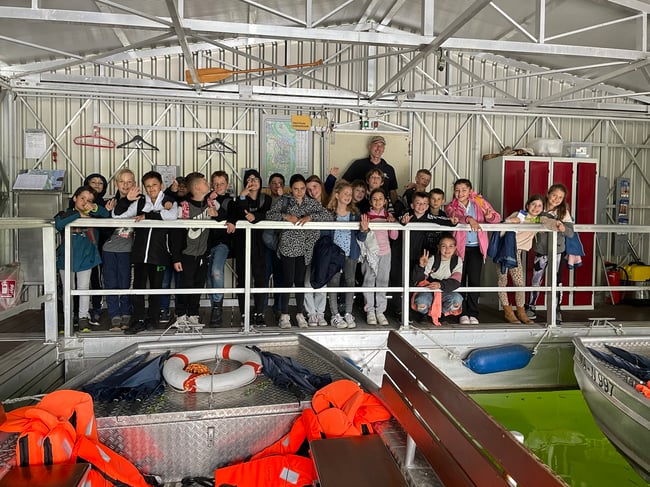 Am Dienstag, 09.05.23 sind wir, die 4a und die 4b, gemeinsam mit dem Bus von Weingarten nach Lingenfeld gefahren. Von der Siedlung aus sind wir durch ein Stückchen Wald gelaufen bis hin zum Daimler Gelände. Dort haben wir auf einer Wiese Rast gemacht. Nach etwa einer Stunde kamen wir an unserem Ziel an. Jürgen und Karl haben uns freundlich empfangen. Mit den Booten "Klaus" und "Dieter" fuhren wir auf den Altrhein hinaus. Hier konnten wir Kormorane, Schwäne, Gänse und Enten beobachten. Außerdem haben wir auch Vieles über den Rhein gelernt.